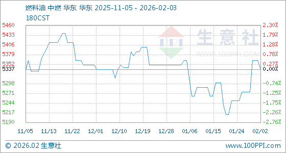 2月3日,生意社燃料油基准价为5337.50元/吨,与本月初(5362.50元/吨)相比,下降了0.47%。