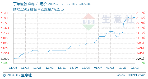 2月4日,生意社丁苯橡胶基准价为13116.67元/吨,与本月初(13133.33元/吨)相比,下降了0.13%。