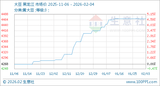 2月4日,生意社大豆基准价为4468.00元/吨,与本月初持平。