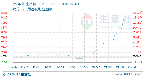 2月4日,生意社PS基准价为8400.00元/吨,与本月初(8433.33元/吨)相比,下降了0.4%。