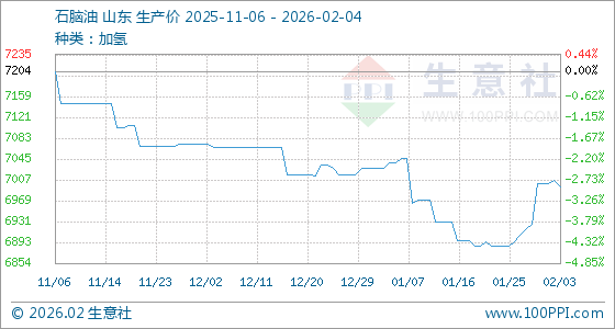 2月4日,生意社石脑油基准价为6993.33元/吨,与本月初(7000.00元/吨)相比,下降了0.1%。