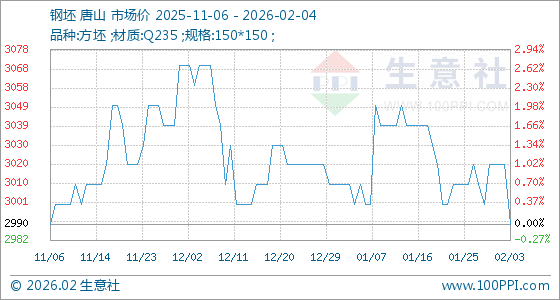 2月4日,生意社钢坯基准价为2990.00元/吨,与本月初(3020.00元/吨)相比,下降了0.99%。