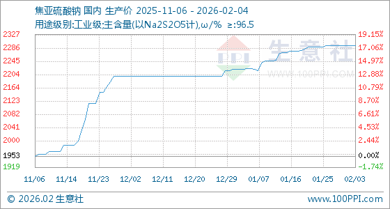 2月4日,生意社焦亚硫酸钠基准价为2293.33元/吨,与本月初持平。