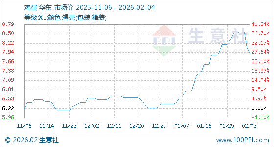 2月4日,生意社鸡蛋基准价为7.90元/公斤,与本月初(8.55元/公斤)相比,下降了7.6%。