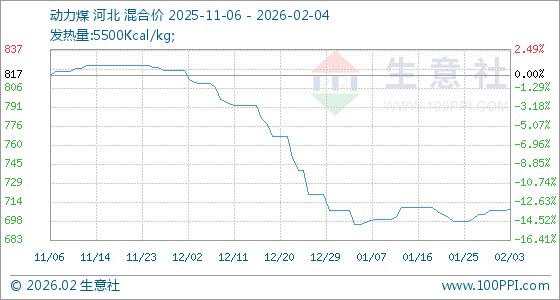 2月4日,生意社动力煤基准价为708.25元/吨,与本月初(707.50元/吨)相比,上涨了0.11%。