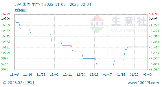 2月4日,生意社EVA基准价为10150.00元/吨,与本月初持平。