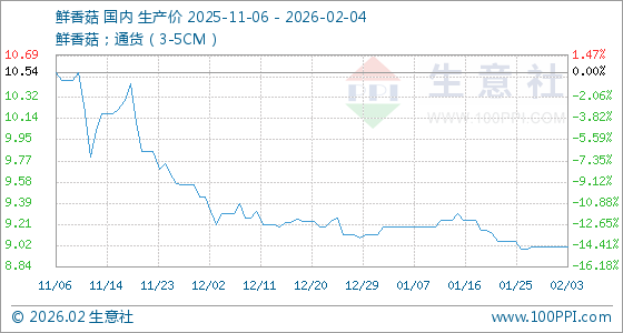 2月4日,生意社鲜香菇基准价为9.01元/公斤,与本月初持平。