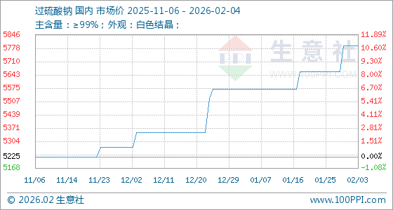 2月4日,生意社过硫酸钠基准价为5790.00元/吨,与本月初持平。