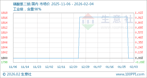 2月4日,生意社磷酸氢二钠基准价为1800.00元/吨,与本月初持平。