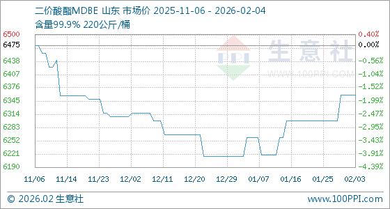 2月4日,生意社二价酸酯MDBE基准价为6360.00元/吨,与本月初持平。