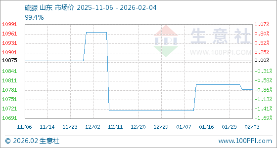 2月4日,生意社硫脲基准价为10783.33元/吨,与本月初持平。
