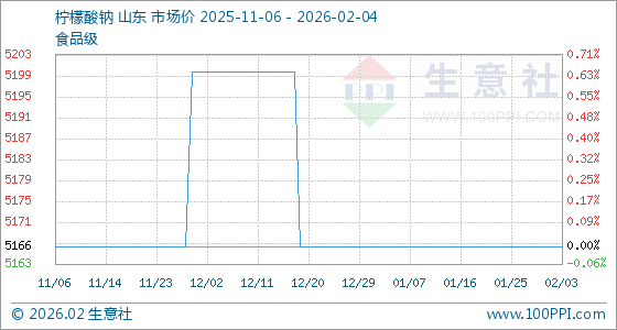 2月4日,生意社柠檬酸钠基准价为5166.67元/吨,与本月初持平。
