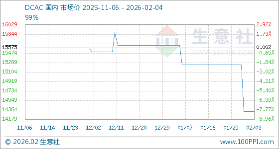 2月4日,生意社DCAC基准价为14333.33元/吨,与本月初持平。