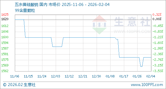 2月4日,生意社五水偏硅酸钠基准价为1578.00元/吨,与本月初持平。