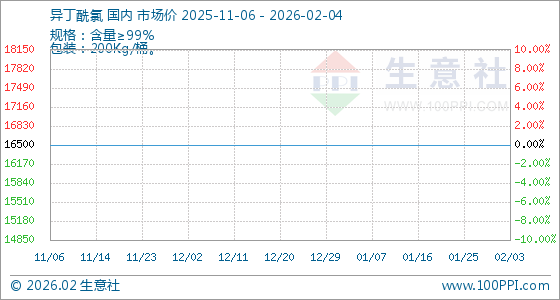 2月4日,生意社异丁酰氯基准价为16500.00元/吨,与本月初持平。