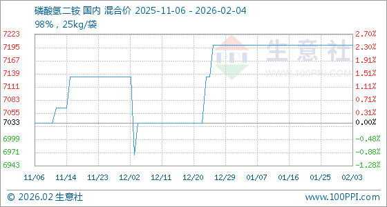 2月4日,生意社磷酸氢二铵基准价为7200.00元/吨,与本月初持平。