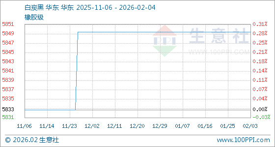 2月4日,生意社白炭黑基准价为5850.00元/吨,与本月初持平。