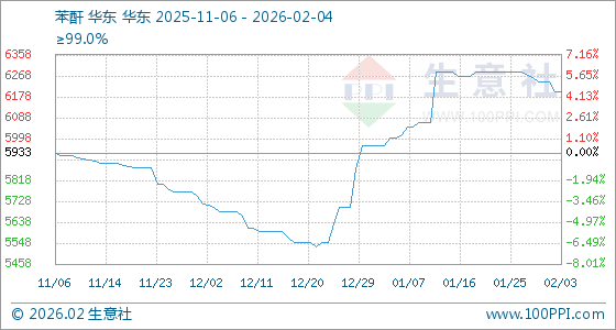 2月4日,生意社苯酐基准价为6200.00元/吨,与本月初(6243.33元/吨)相比,下降了0.69%。