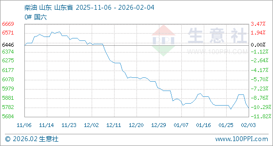 2月4日,生意社柴油基准价为5776.20元/吨,与本月初(5922.40元/吨)相比,下降了2.47%。