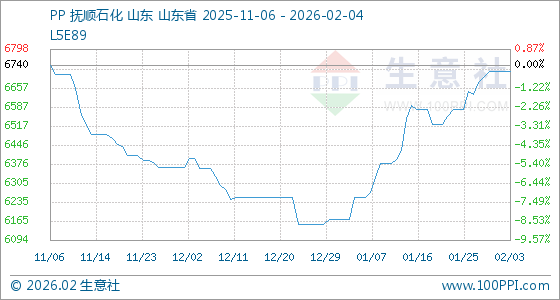 2月4日,生意社PP(拉丝)基准价为6720.00元/吨,与本月初持平。