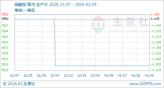 2月5日,生意社硝酸铵基准价为3530.00元/吨,与本月初持平。