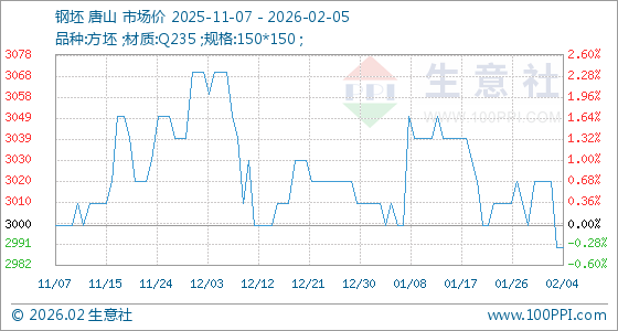 2月5日,生意社钢坯基准价为2990.00元/吨,与本月初(3020.00元/吨)相比,下降了0.99%。