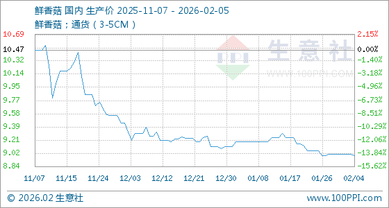 2月5日,生意社鲜香菇基准价为8.99元/公斤,与本月初(9.01元/公斤)相比,下降了0.22%。