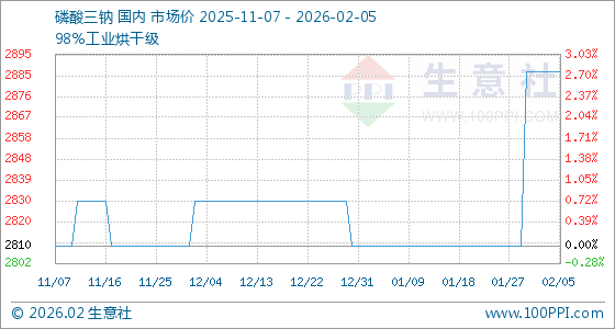 2月5日,生意社磷酸三钠基准价为2887.50元/吨,与本月初持平。