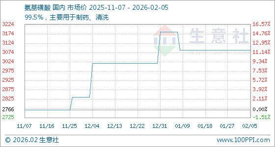 2月5日,生意社氨基磺酸基准价为3087.50元/吨,与本月初持平。
