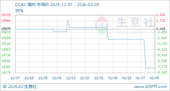 2月5日,生意社DCAC基准价为14333.33元/吨,与本月初持平。