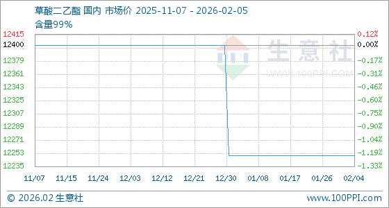 2月5日,生意社草酸二乙酯基准价为12250.00元/吨,与本月初持平。