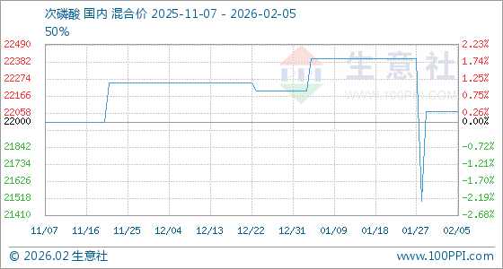 2月5日,生意社次磷酸基准价为22066.67元/吨,与本月初持平。