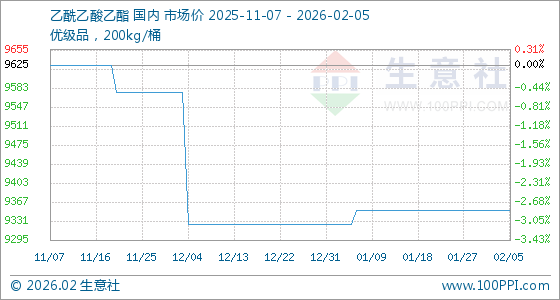2月5日,生意社乙酰乙酸乙酯基准价为9350.00元/吨,与本月初持平。