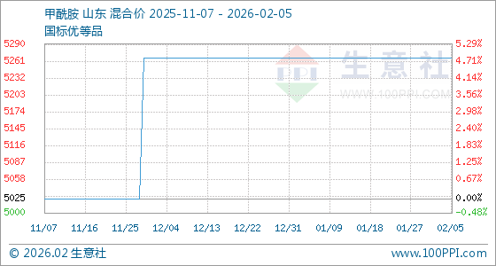 2月5日,生意社甲酰胺基准价为5266.67元/吨,与本月初持平。