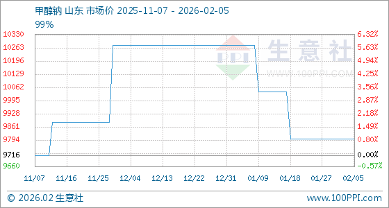 2月5日,生意社甲醇钠基准价为9800.00元/吨,与本月初持平。