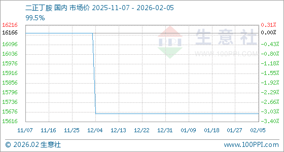 2月5日,生意社二正丁胺基准价为15666.67元/吨,与本月初持平。