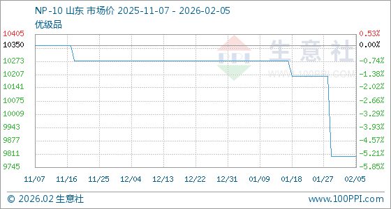 2月5日,生意社NP-10基准价为9800.00元/吨,与本月初持平。