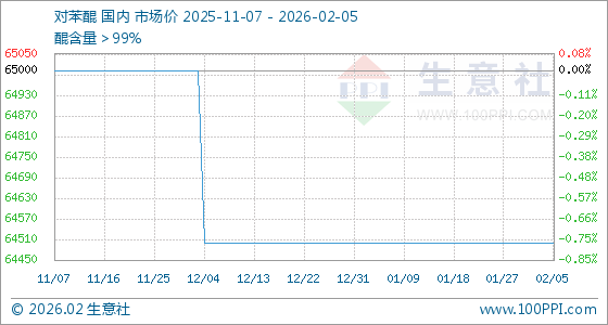 2月5日,生意社对苯醌基准价为64500.00元/吨,与本月初持平。