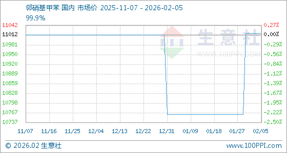2月5日,生意社邻硝基甲苯基准价为11016.67元/吨,与本月初持平。