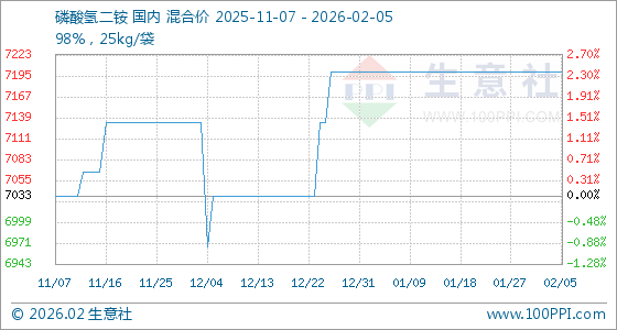 2月5日,生意社磷酸氢二铵基准价为7200.00元/吨,与本月初持平。