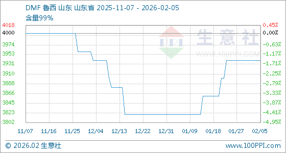 2月5日,生意社DMF基准价为3940.00元/吨,与本月初持平。