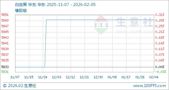 2月5日,生意社白炭黑基准价为5850.00元/吨,与本月初持平。