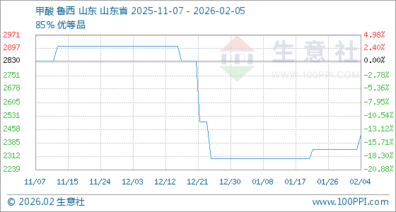 2月5日,生意社甲酸基准价为2430.00元/吨,与本月初(2350.00元/吨)相比,上涨了3.40%。
