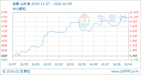 2月5日,生意社尿素基准价为1777.50元/吨,与本月初(1782.50元/吨)相比,下降了0.28%。