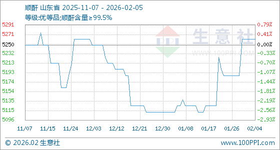 2月5日,生意社顺酐基准价为5262.50元/吨,与本月初持平。