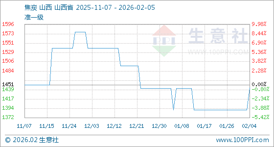 2月5日,生意社焦炭基准价为1443.75元/吨,与本月初(1391.25元/吨)相比,上涨了3.77%。