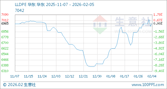 2月5日,生意社LLDPE基准价为6975.00元/吨,与本月初(6966.67元/吨)相比,上涨了0.12%。