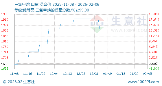 2月6日,生意社三氯甲烷基准价为1900.00元/吨,与本月初持平。