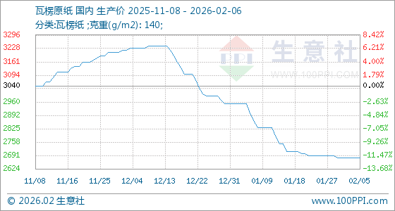 2月6日,生意社瓦楞原纸基准价为2680.00元/吨,与本月初持平。