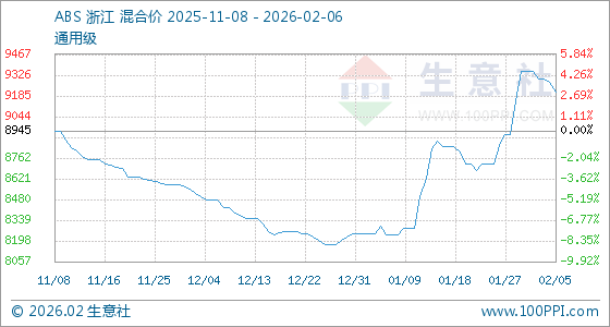 2月6日,生意社ABS基准价为9212.50元/吨,与本月初(9350.00元/吨)相比,下降了1.47%。